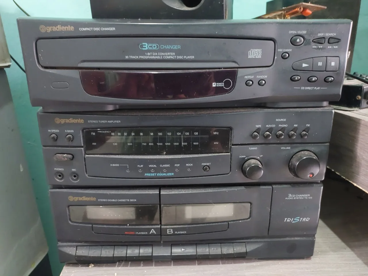Aparelho de som Gradiente com design clássico e alta qualidade de áudio. Desfrute de suas músicas favoritas com este sistema de som completo. Perfeito para quem busca um som potente e com estilo.