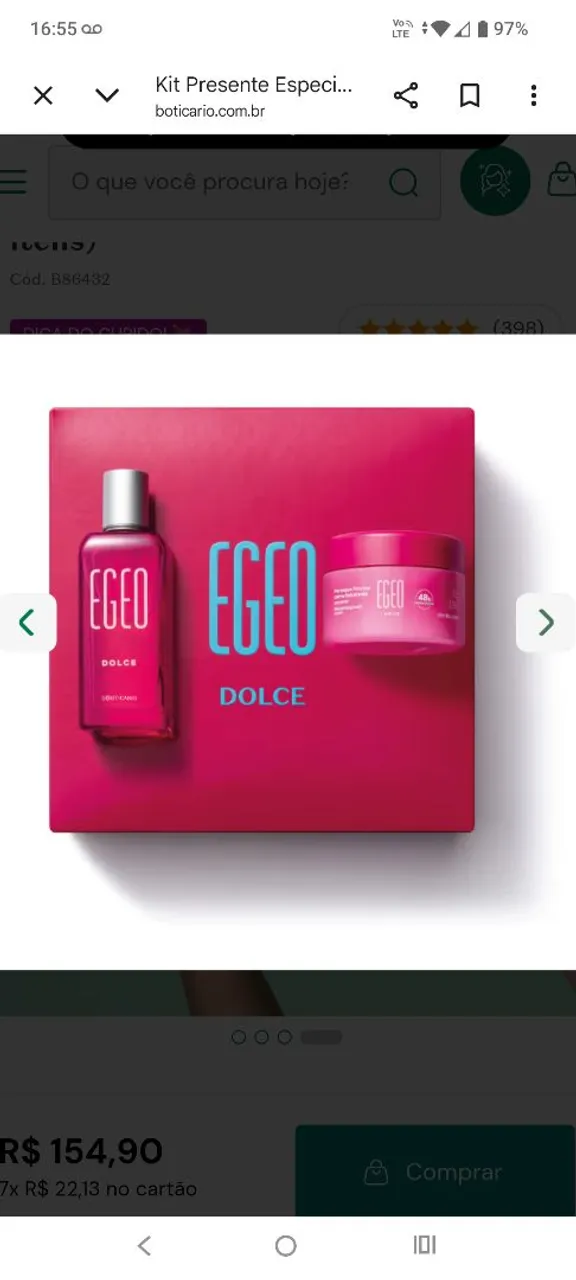Desperte seus sentidos com o Kit Egeo Dolce, uma explosão de doçura e feminilidade! Com o perfume e o creme hidratante, você se sentirá envolvida em uma fragrância irresistível. A combinação perfeita para um toque de charme em cada momento.