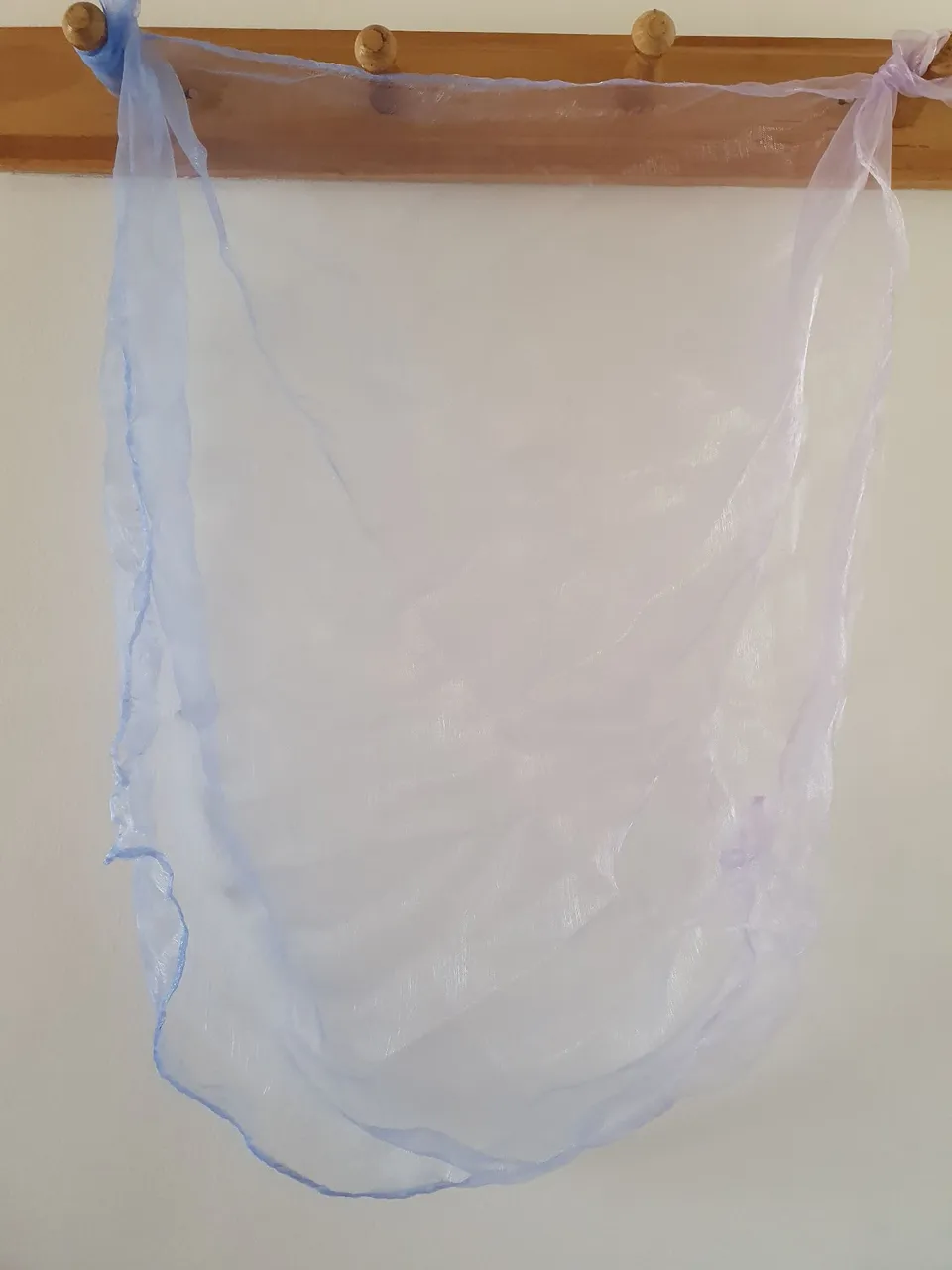 Lenço multicolorido, conforme dobra tem tom de azul, branco, lilás ou rosa 60x60cm