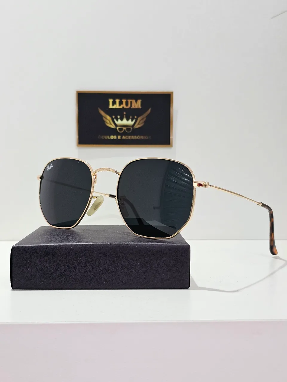 Apresentamos óculos de sol hexagonais com armação dourada, combinando design moderno e proteção para seus olhos. Um acessório que eleva seu visual em qualquer ocasião, garantindo estilo e conforto.