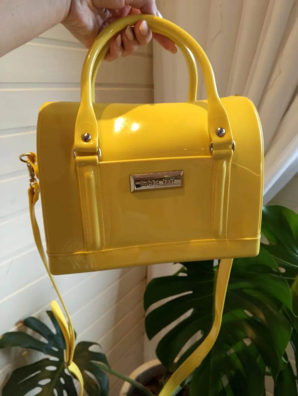 Bolsa Petit Jolie amarela, perfeita para adicionar um toque de cor e estilo aos seus looks. Em ótimo estado de conservação.