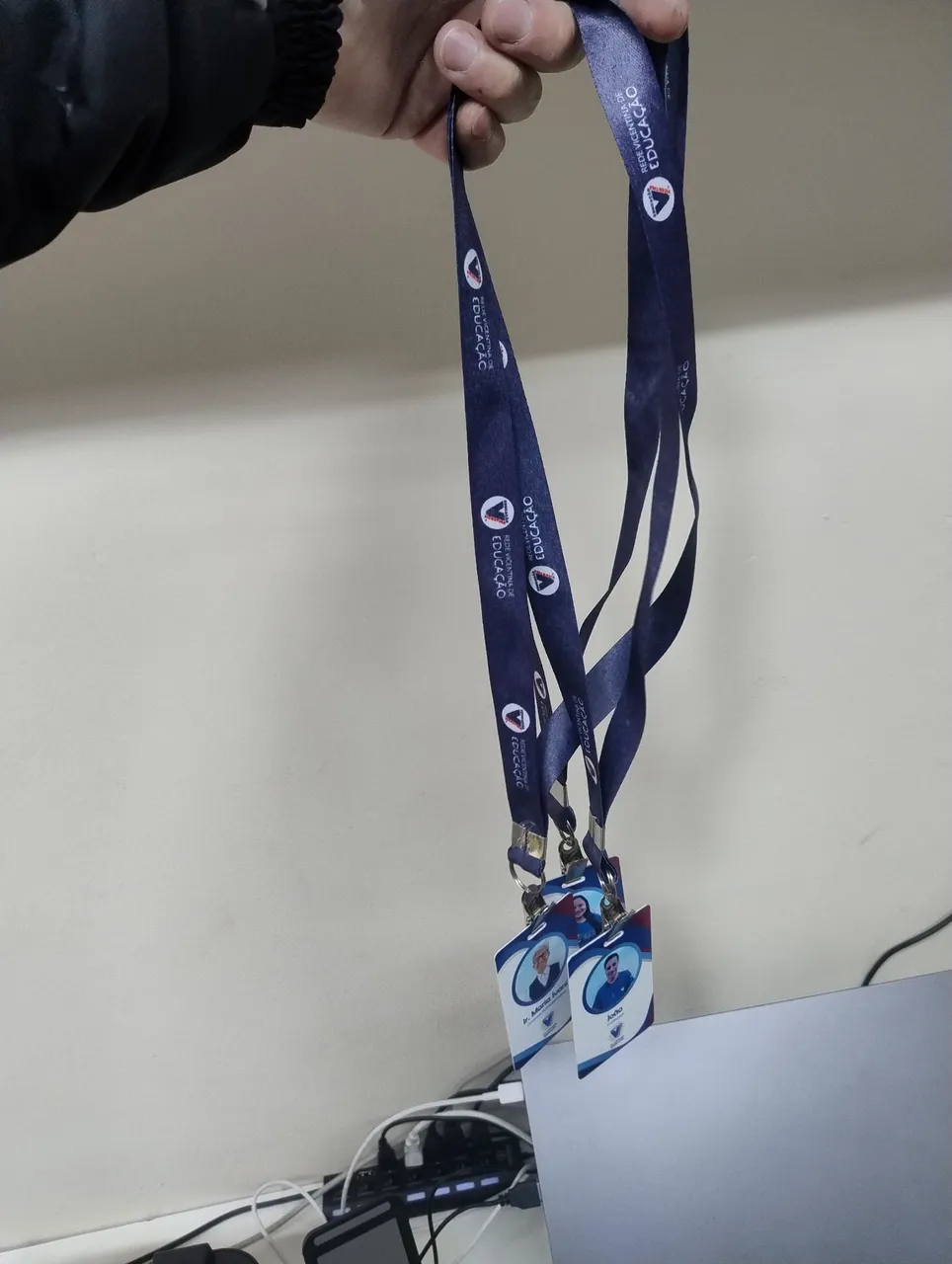 Conjunto de porta crachás com cordões personalizados, ideal para identificação em eventos e conferências. Design prático e elegante.