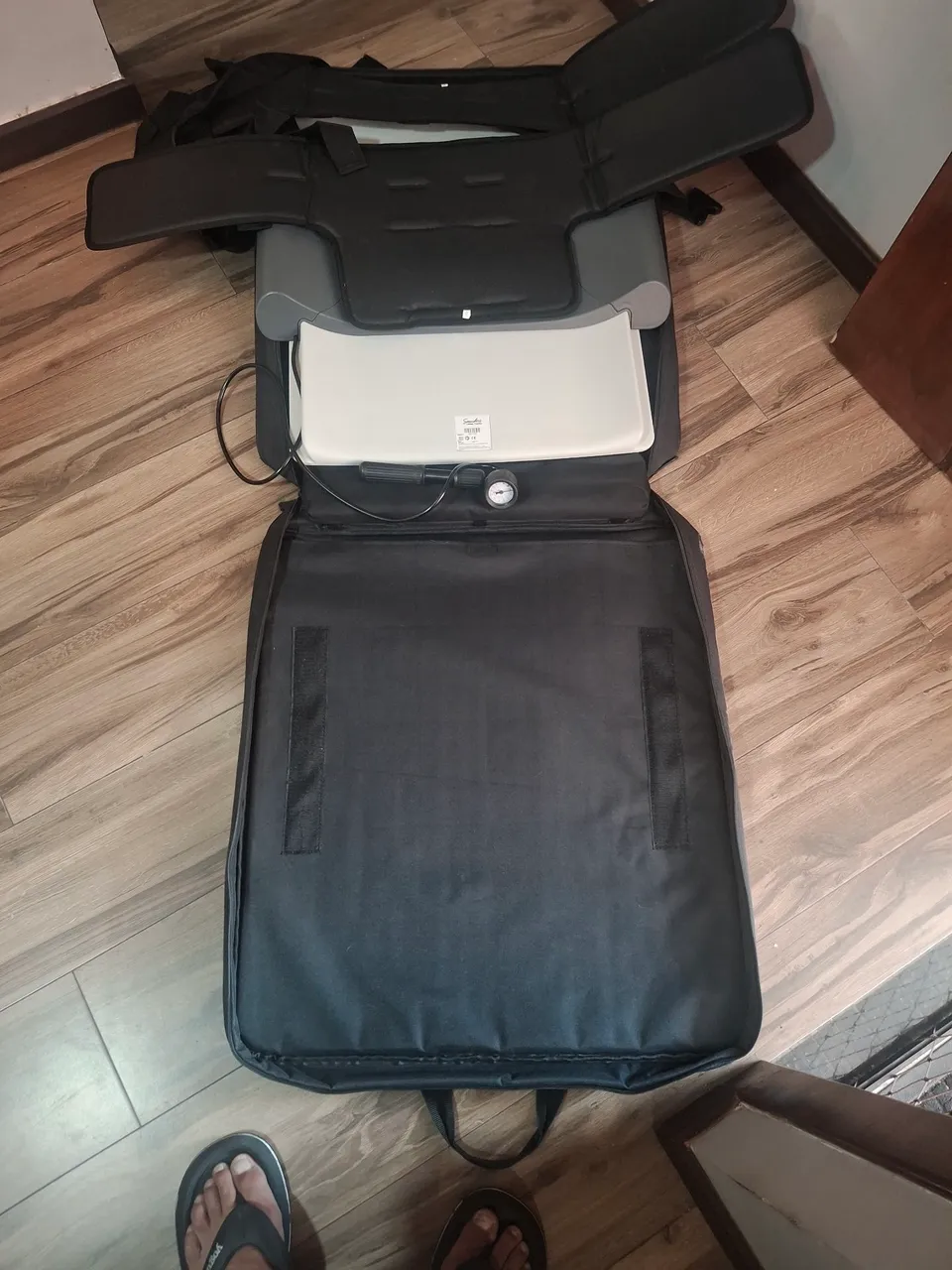 Dispositivo de tração lombar portátil Saunders com bomba manual e estojo de viagem. Alívio imediato para dores nas costas e melhora da postura. Leve e fácil de usar, perfeito para levar para qualquer lugar. Invista no seu bem-estar!