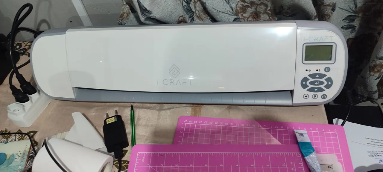 A Plotter de Recorte I-Craft é a ferramenta perfeita para dar vida aos seus projetos de artesanato e personalização! Ideal para cortar diversos materiais, como vinil adesivo, papel e tecido, com precisão e facilidade. Crie adesivos, transfers para roupas, convites e muito mais! Pouco tempo de uso, ainda na garantia, estou vendendo por que vou me mudar! Em perfeito estado e com várias facas novas. Eu não entrego, interessado chamar no 419... ver número