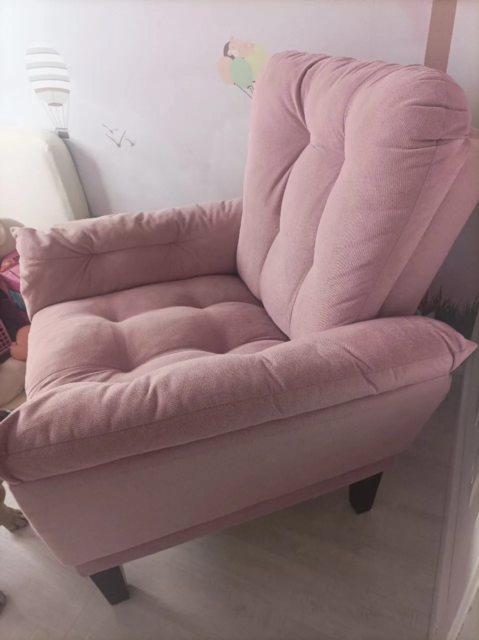 Linda poltrona rosa, perfeita para relaxar e decorar o seu ambiente! Pode ser utilizada também como poltrona de amamentação.