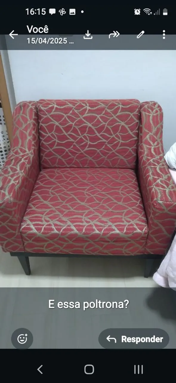 Linda poltrona com design elegante e detalhes em tecido de alta qualidade. Perfeita para relaxar e decorar sua sala!