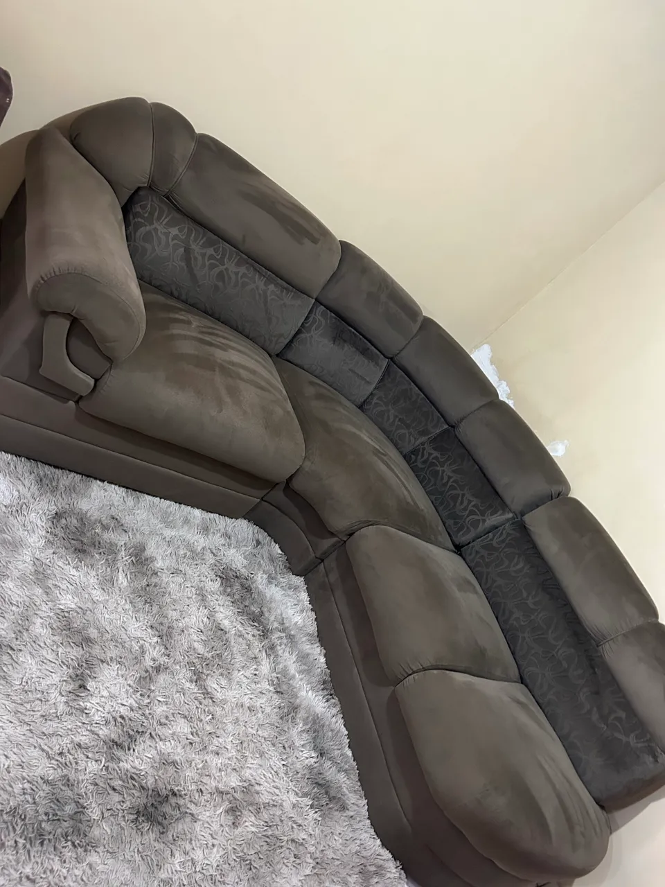 Sofá confortável e espaçoso para sala de estar. Design moderno e elegante, perfeito para relaxar e receber visitas. Sofá com estofado novo, sem rasgos e sem manchas, somente realizar uma limpeza. Tem que retirar. OBSERVAÇÃO: As marcas da foto são do aspirador que foi limpado antes da foto.