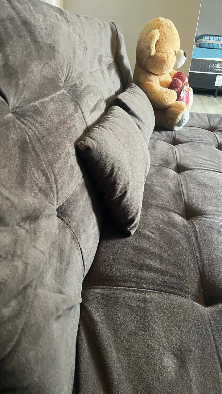 Sofá cama 187x 85, em perfeitas condições, apenas a película do forro embaixo que está danificado, mas o veludo por cima na contem avarias. É super confortável acomodando duas pessoas deitadas com ele aberto