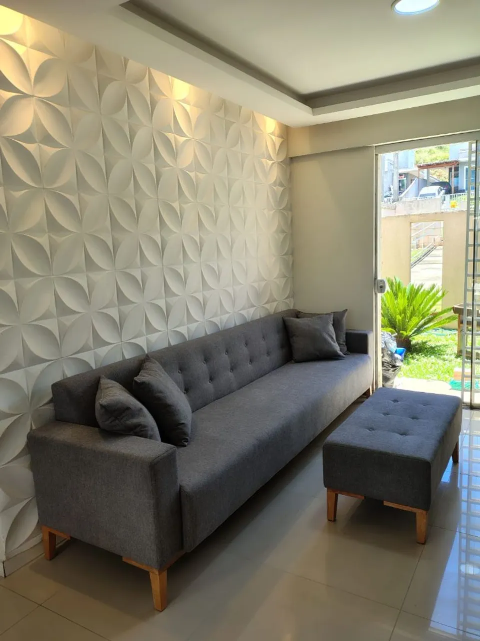 Sofá novo com design moderno e elegante, perfeito para sua sala. Acompanha um puff para maior conforto e praticidade. Ideal para relaxar e receber visitas.