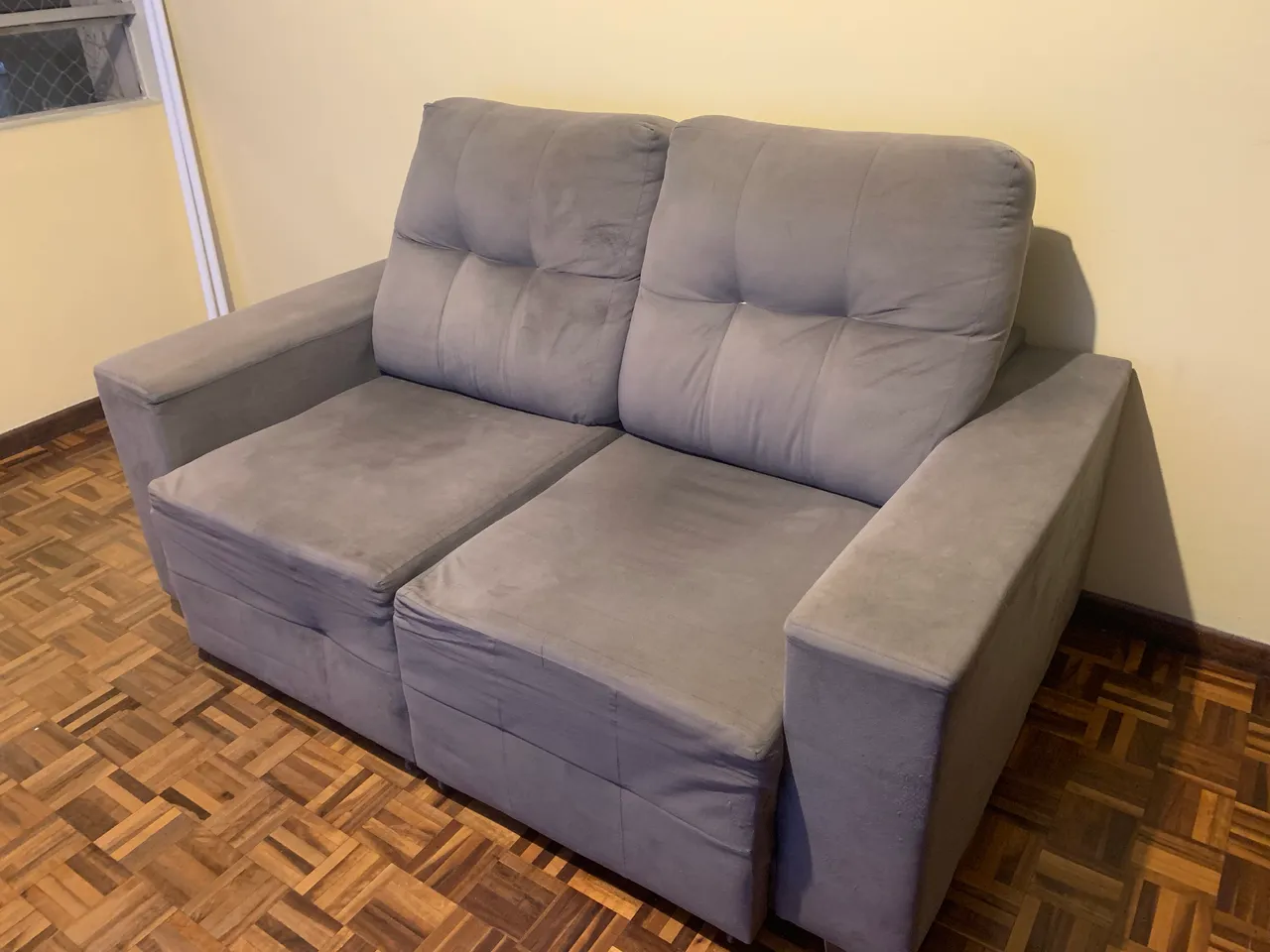 Vendo sofá retrátil e reclinável, com capacidade para 2 lugares. Estou vendendo devido a mudança de cidade. Valor: R$400 Parcelo em até 12X no cartão de crédito + taxa da maquininha Não entrego.