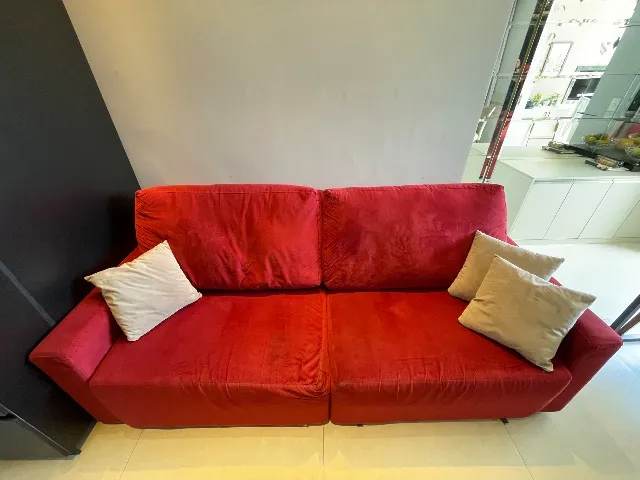 Aconchego e estilo se encontram neste sofá vermelho, perfeito para transformar sua sala! Design moderno e confortável, ideal para relaxar e receber amigos.