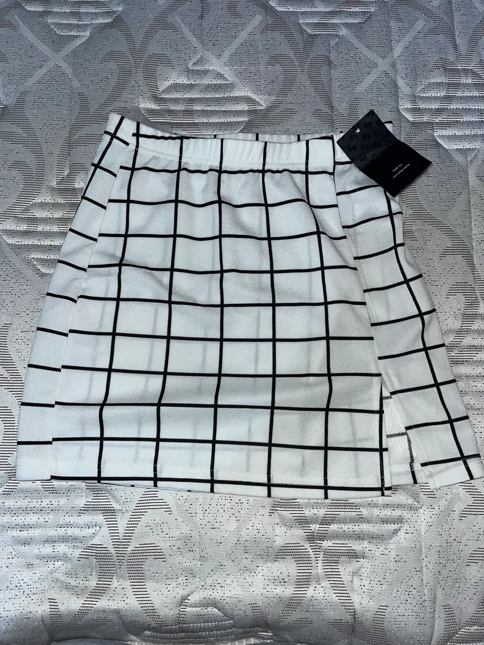 Linda saia com estampa quadriculada, perfeita para um visual moderno e estiloso. Confortável e versátil, ideal para diversas ocasiões!