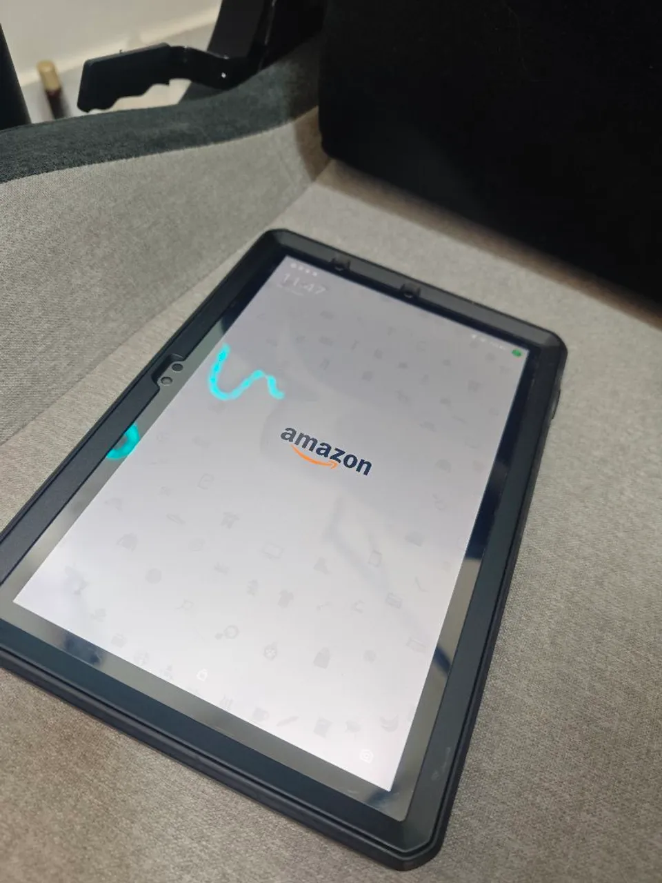 Amazon fire hd10, ótimo tablet para ler, assistir filme, YouTube bateria dura muito, nao tem risco na tela, tudo funciona perfeitamente, so a capa eu tentei arrumar e derramei cola, uso pouco, apenas tablet sem cabo/carregador