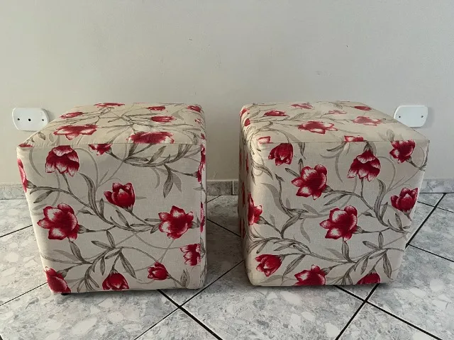 Conjunto de 2 puffs com design floral elegante. Perfeitos para complementar a decoração da sua sala, quarto ou escritório, adicionando um toque de charme e conforto. 40 cm de largura por 40cm de altura