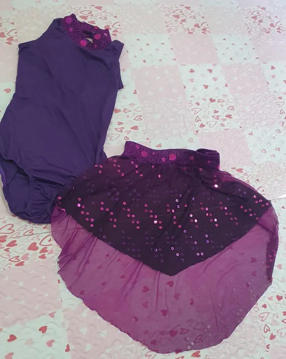 Body roxo com um detalhe em glitter no decote. A saia é transparente com glitter. Veste tam. P ou 34/36. Retirar no Condominio Terras Alpha.