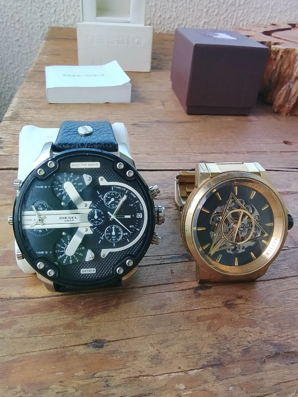Dois relógios incríveis para você! Um Diesel DZ7313 com design arrojado e detalhes que impressionam. E um Chilli Beans com estilo único e moderno. Escolha o seu e arrase!