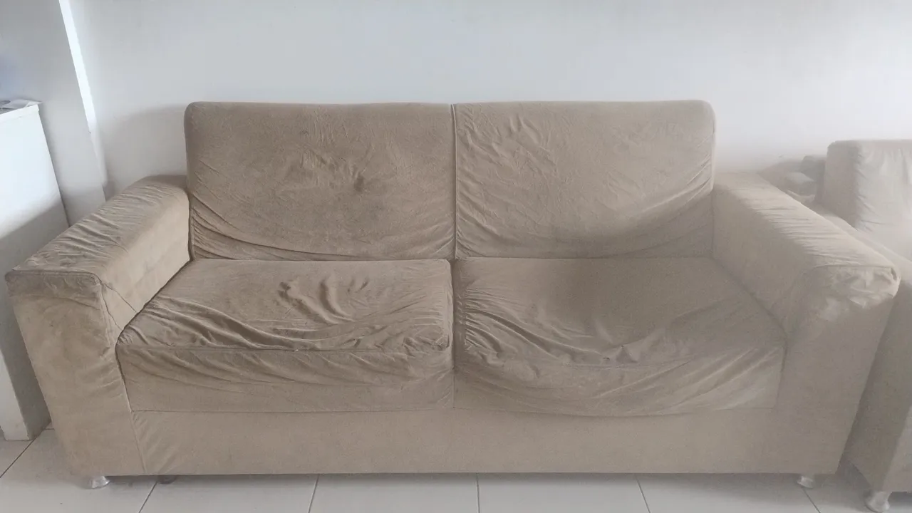 Sofá de 2 lugares perfeito para sua sala! Precisa apenas trocar a espuma de um dos assentos e fazer a higienização. Tenho feito a cada ano. Retirada por conta do comprador.
