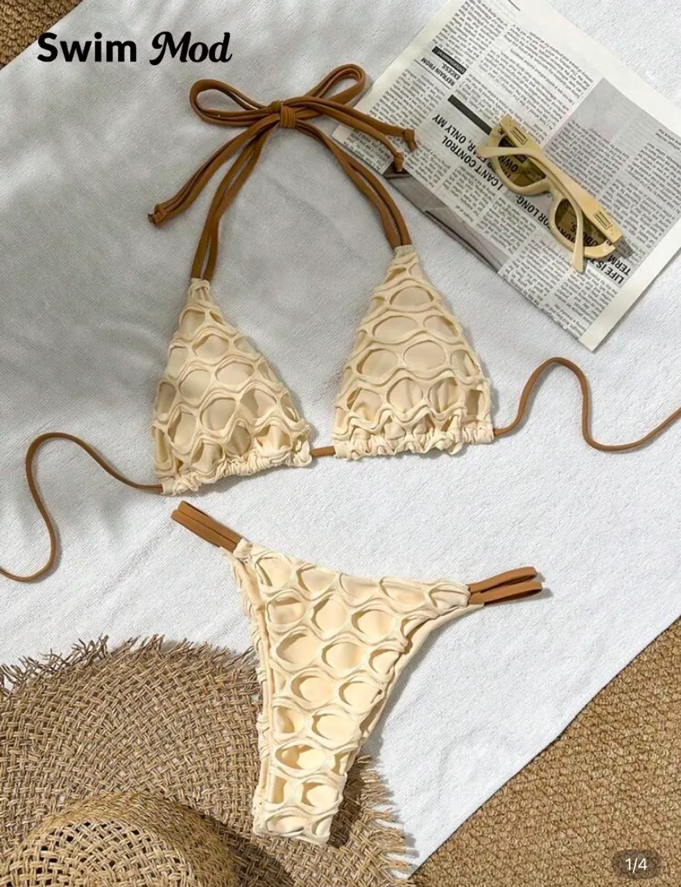Biquíni texturizado, ideal para um visual moderno e estiloso na praia. Conforto e design únicos para você arrasar neste verão! Tamanho P! Novo, nunca usado