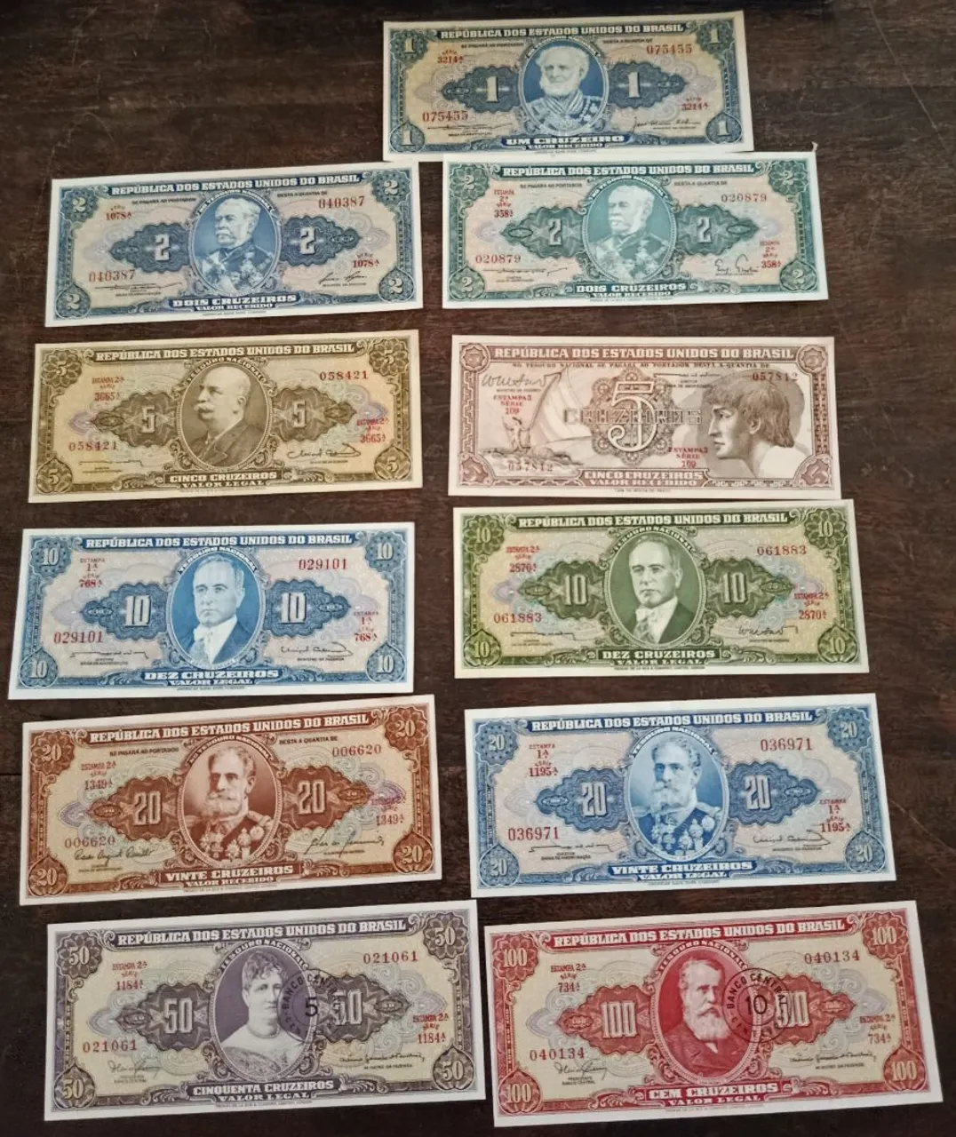 Conjunto de cédulas antigas do Brasil, ideais para colecionadores e entusiastas de numismática. Peças raras e históricas que retratam a história do país. De 1940 a 1969 total de 11 notas