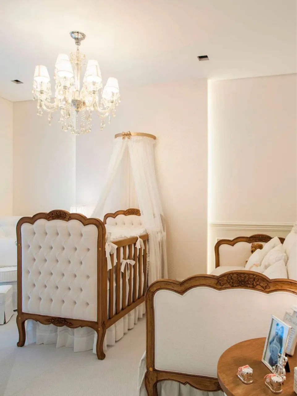 berço original celina dias, modelo provençal, feito em madeira maciça, entalhado florzinhas à mão e revestido em tapeçaria captonê, oferece 3 regulagens de estrado, ventilação para o colchão e acabamento atóxico. dimensões: largura 140 cm / altura 115 cm / profundidade 80 cm. novo na caixa nunca usado.