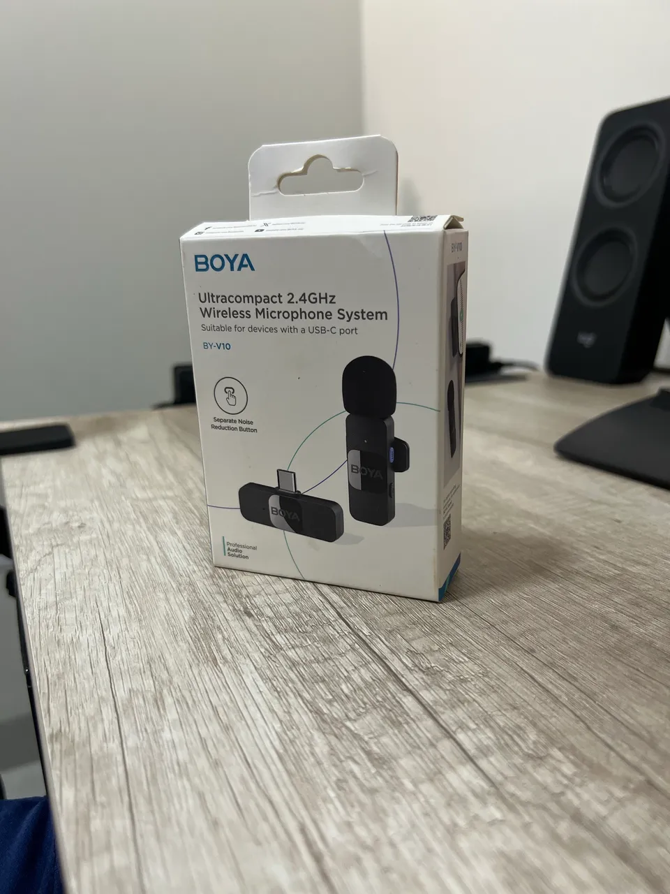 Microfone sem fio Boya BY-V10, ideal para gravações de alta qualidade com áudio nítido. Conectividade USB-C para maior compatibilidade. Design compacto e portátil, perfeito para criadores de conteúdo e profissionais.