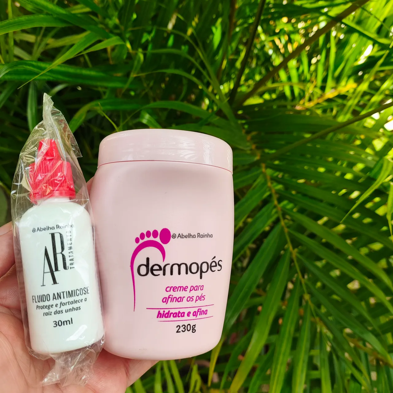 Kit Abelha Rainha para unhas e pés! O Fluido Antimicose protege e fortalece a raiz das unhas. O Creme Dermopés hidrata e afina os pés, deixando-os macios e saudáveis. Cuide de você com a Abelha Rainha!