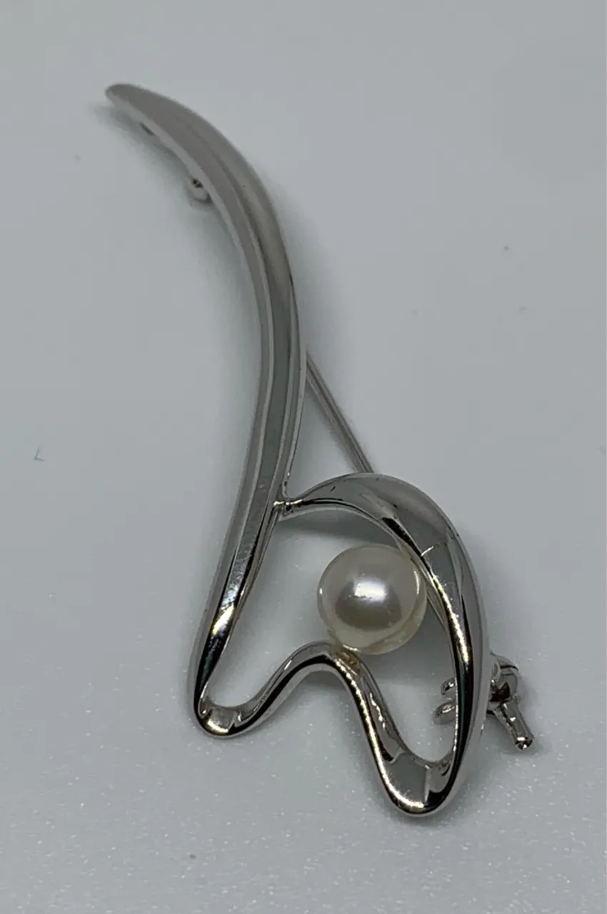 Broche de prata vintage com pérola