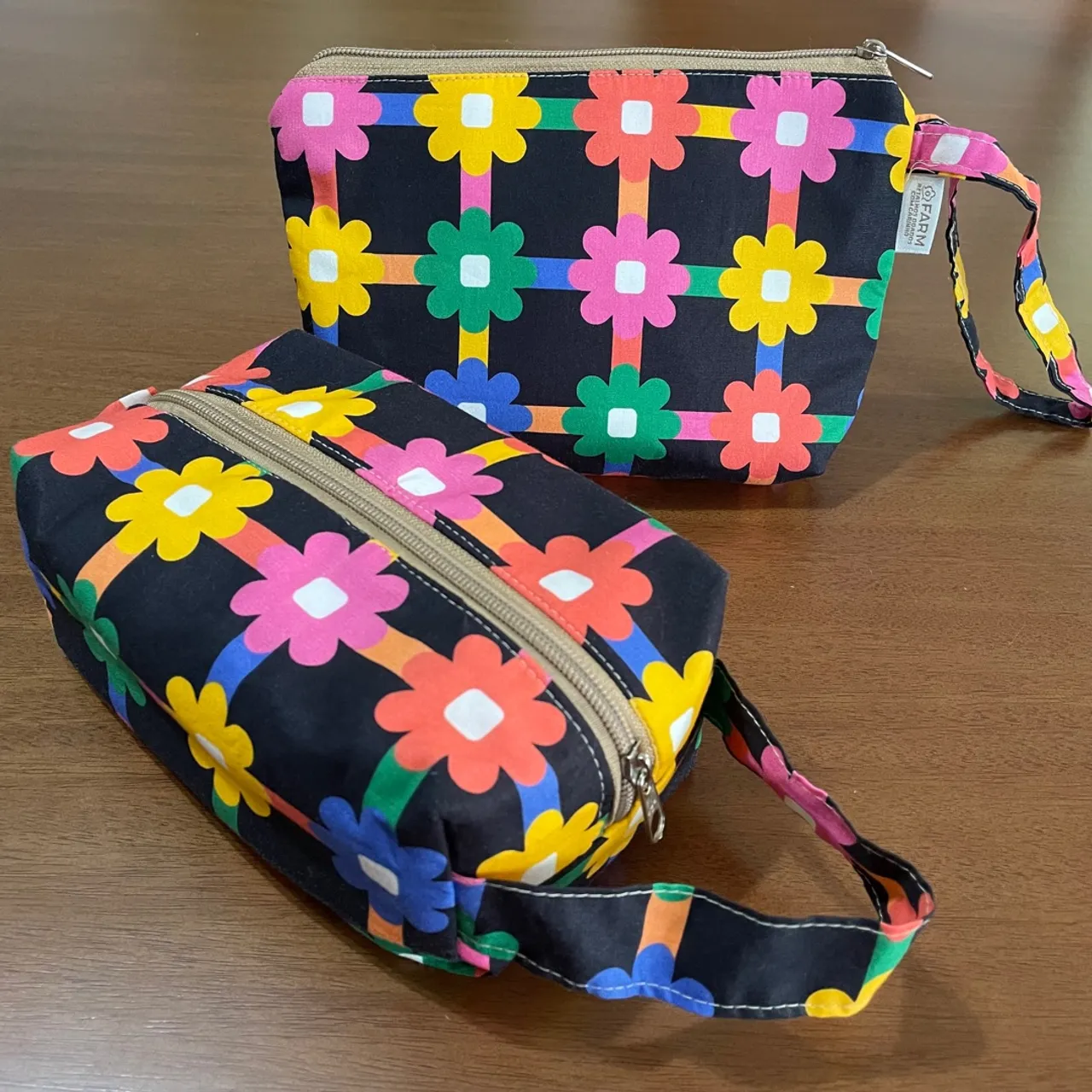 Necessaires da ReFarm - feita com tecidos originais Farm de um projeto de sustentabilidade da marca.