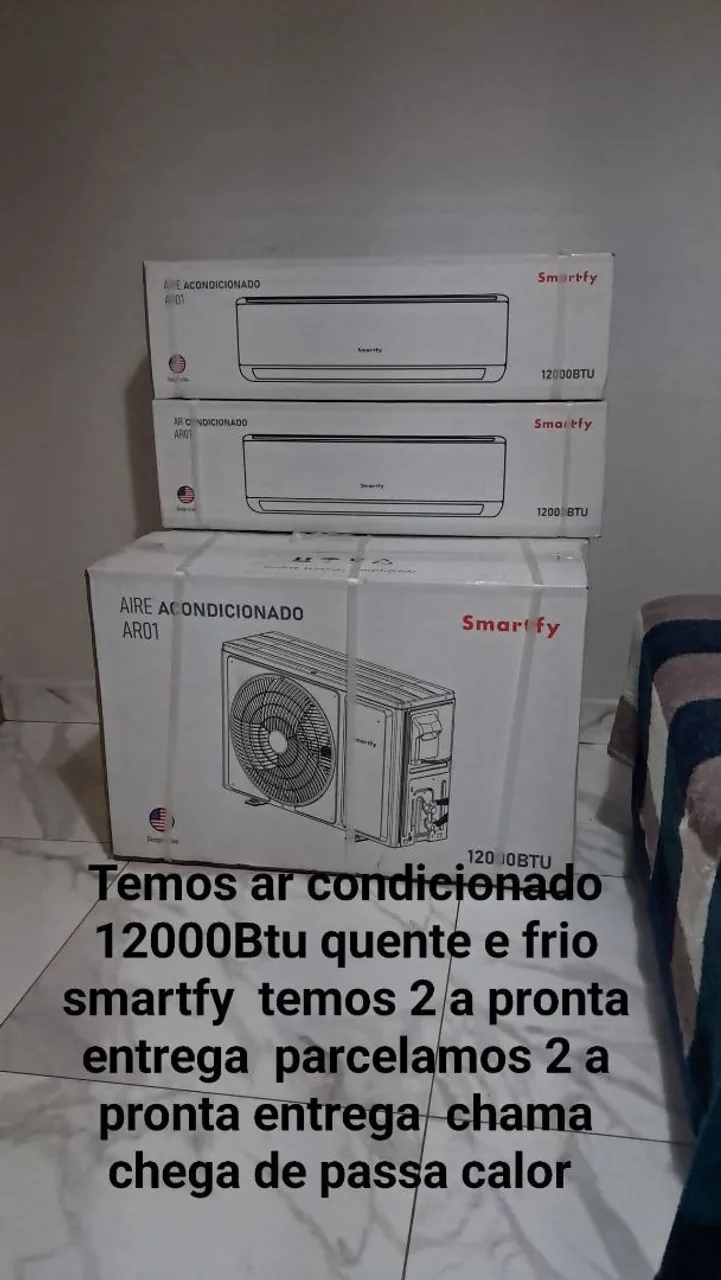 Ar condicionado Smartfy de 12000 BTUs, ideal para climatizar seu ambiente com eficiência e conforto, tanto no calor quanto no frio. Pronta entrega e parcelamento facilitado! Já vem. Kit instalação Chama