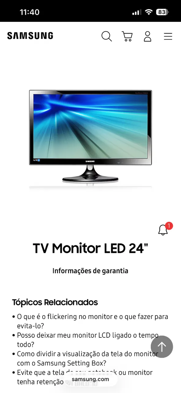 Monitor led samsung 24 polegadas, perfeito estado de conservação. Sem nenhuma marca de uso.