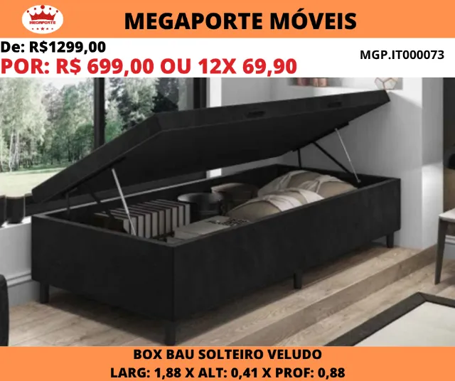 Apresentamos a Box Baú Solteiro Veludo, a combinação perfeita de estilo e funcionalidade para o seu quarto. Com design elegante e acabamento em veludo, esta cama oferece um toque de sofisticação ao ambiente. Além disso, o espaço interno do baú é ideal para otimizar o espaço, guardando seus pertences de forma organizada e prática. Durma com conforto e aproveite cada detalhe!
