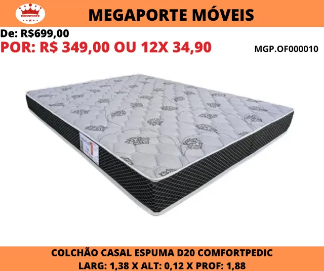 Desfrute de noites de sono revigorantes com o Colchão Casal Espuma D20 Comfortpedic. Conforto e suporte ideais para um descanso perfeito.