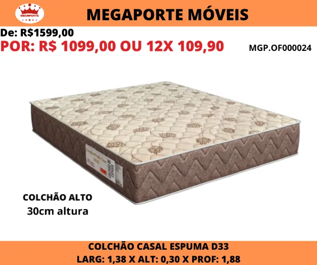 Desfrute de noites de sono revigorantes com o Colchão Casal Espuma D33 Line. Conforto e suporte garantidos para um descanso perfeito! Com 30cm de altura e dimensões ideais, este colchão oferece o equilíbrio perfeito entre conforto e durabilidade.