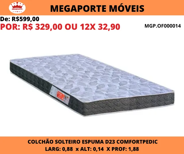 Tenha noites de sono incríveis com este colchão solteiro de espuma D23! Conforto garantido e dimensões ideais para o seu descanso. Durma bem e acorde renovado!
