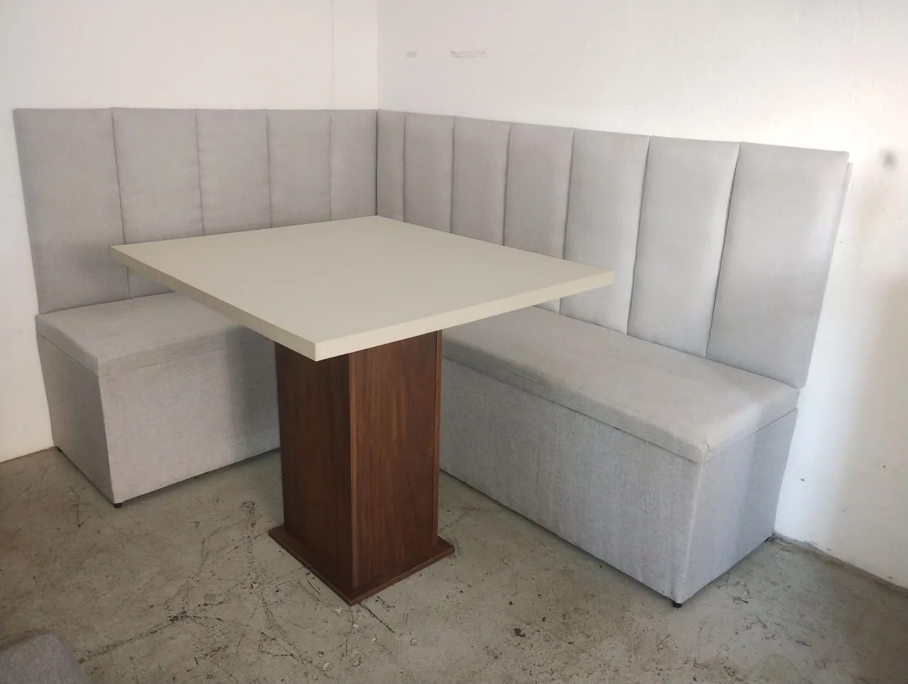 Canto alemão elegante e funcional, perfeito para otimizar o espaço da sua cozinha ou sala de jantar. Design moderno com assentos confortáveis e encosto estofado. Ideal para criar um ambiente acolhedor e charmoso.