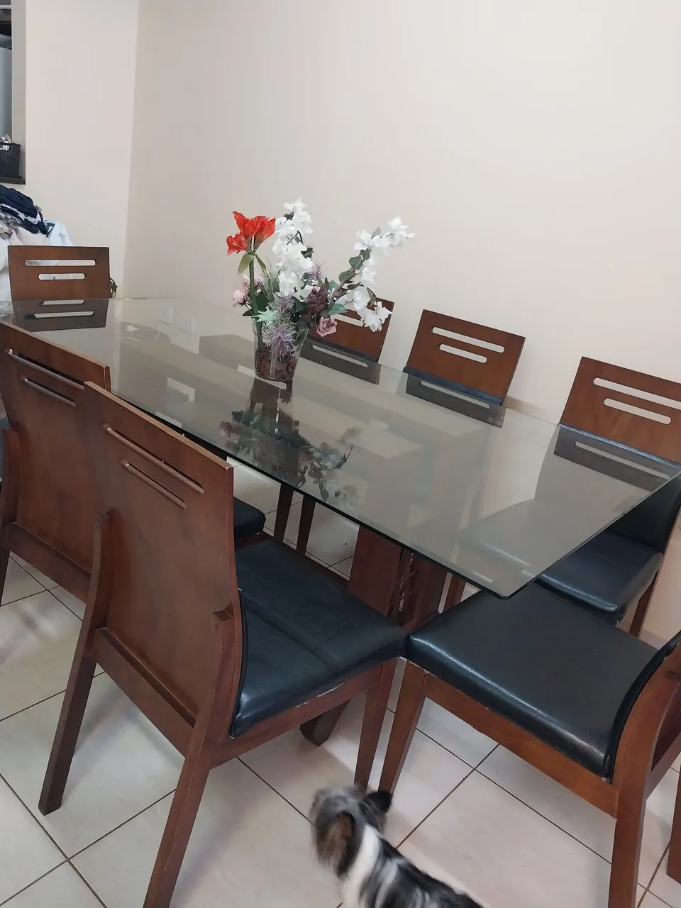 Linda mesa de jantar com 8 cadeiras, perfeita para reunir a família e amigos. Design elegante e sofisticado que combina com qualquer ambiente. Uma peça que une beleza e funcionalidade, transformando sua sala de jantar em um espaço acolhedor e charmoso.