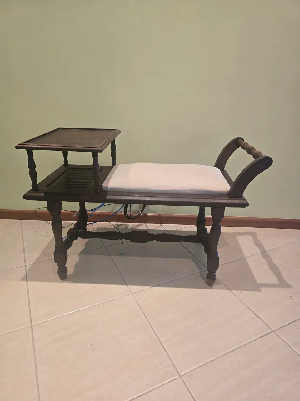 Linda mesa de telefone antiga, perfeita para dar um toque vintage à sua casa. Design charmoso e funcional, ideal para decorar e organizar seu espaço com elegância.