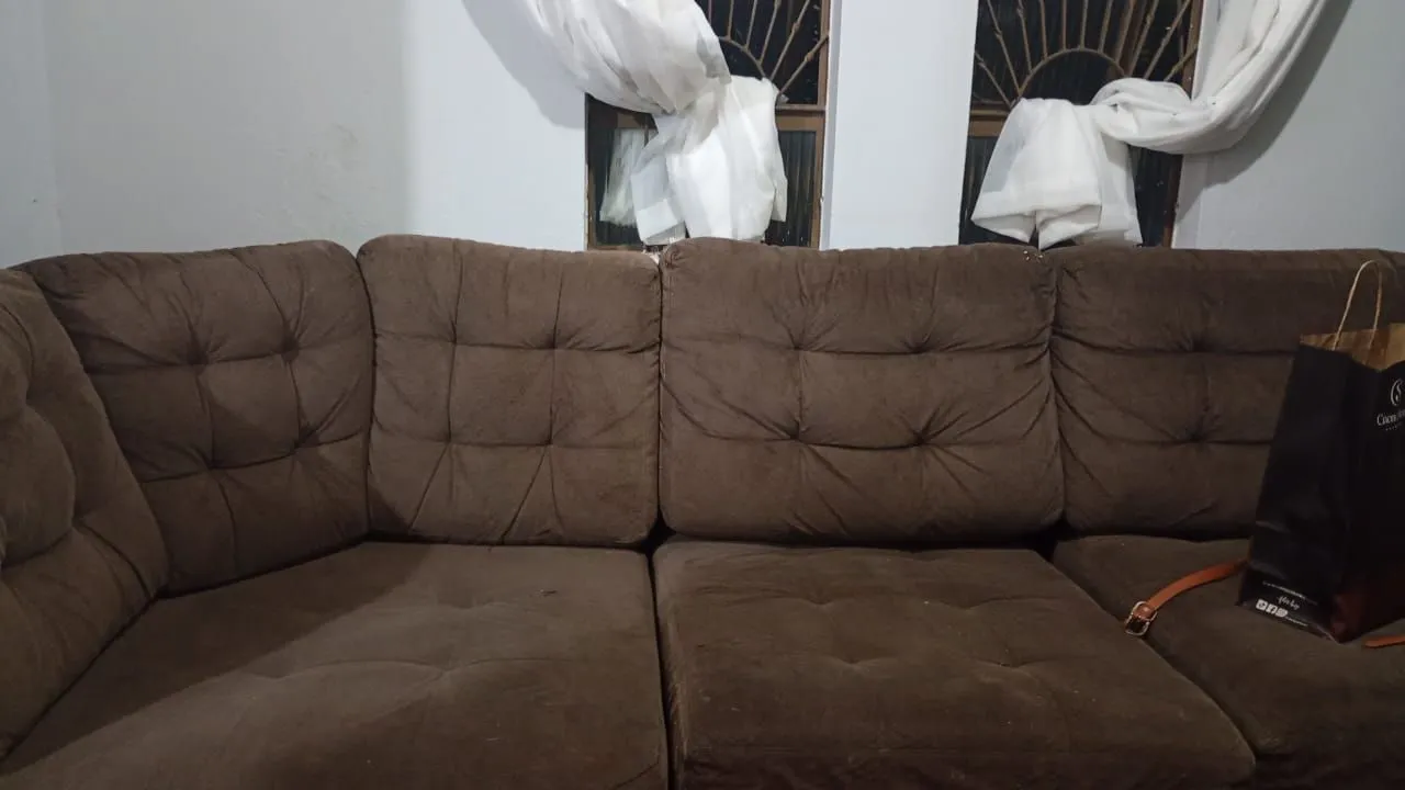 Sofá de canto espaçoso e confortável, perfeito para relaxar e receber visitas. Design moderno e elegante para sua sala de estar.
