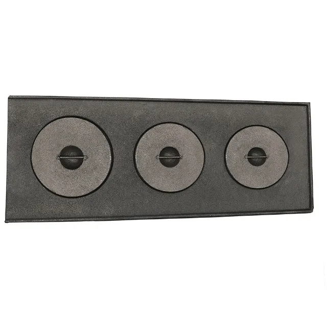 Chapa para fogão a lenha, ferro fundido, 03 bocas modelo mineira. Medidas: 22 x 27 x 63 CM.