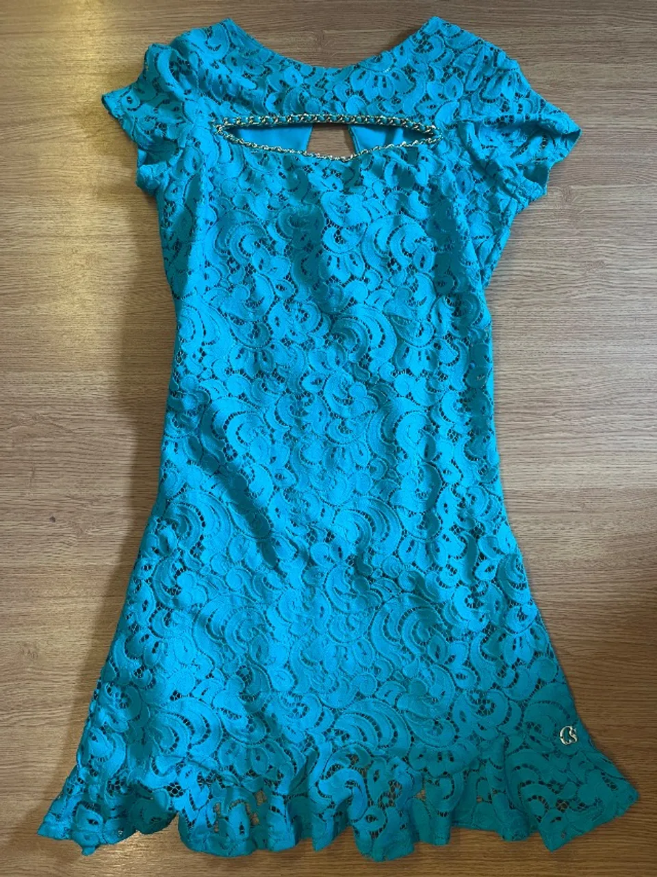 Lindo vestido curto de renda azul turquesa, perfeito para diversas ocasiões. Detalhes charmosos e caimento impecável. Conforto e elegância em uma única peça!