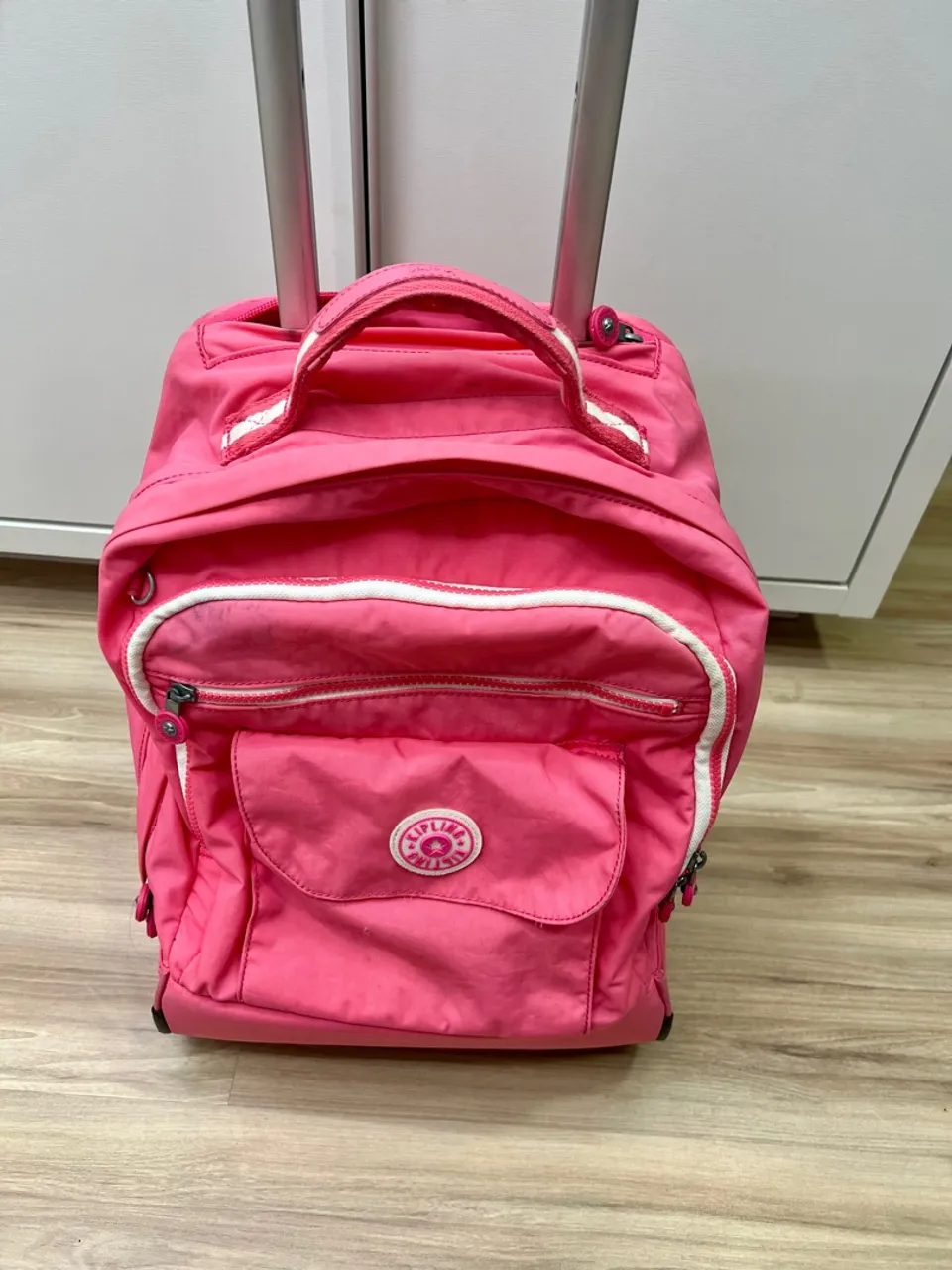 Linda mala de rodinhas Kipling rosa, perfeita para escola, viagens e passeios. Design moderno e funcional, com amplo espaço interno e diversos compartimentos. Usada 6 meses