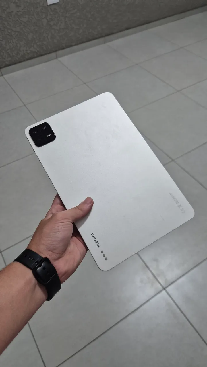 Vai com teclado bluetooth e capa um pouco desgastada de brinde.