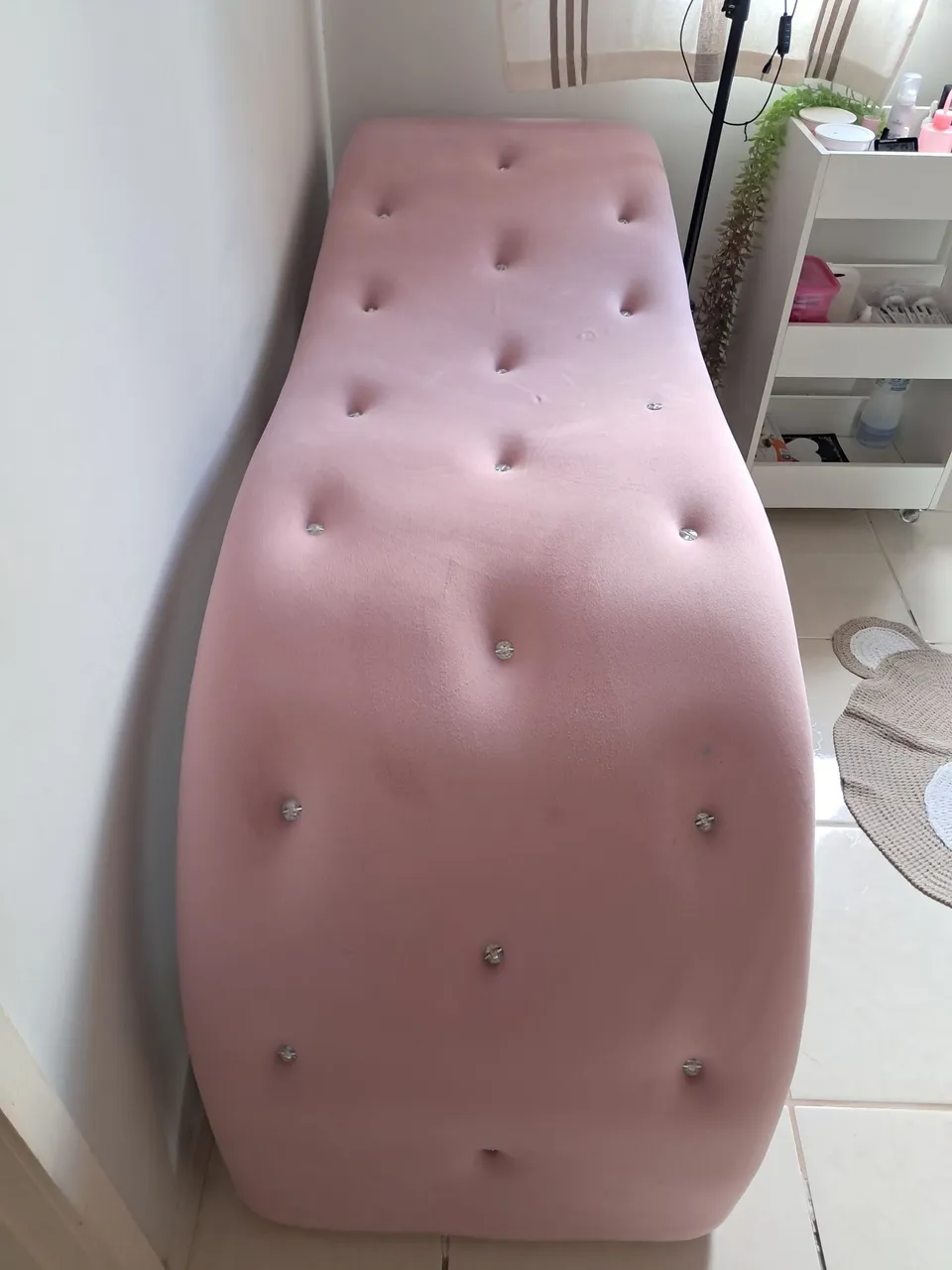 Desfrute de conforto e elegância com esta maca rosa, perfeita para relaxamento e beleza. Acompanhada de um carrinho auxiliar para organização e uma ring light para iluminação ideal. Tenho alguns produtos de extensão de cílios também novos !!